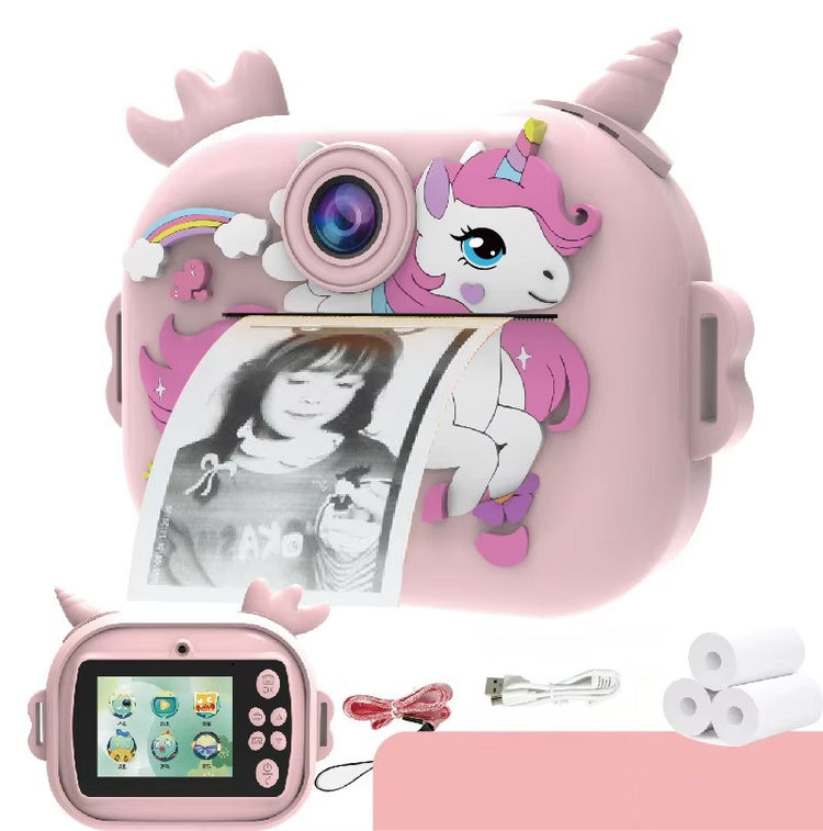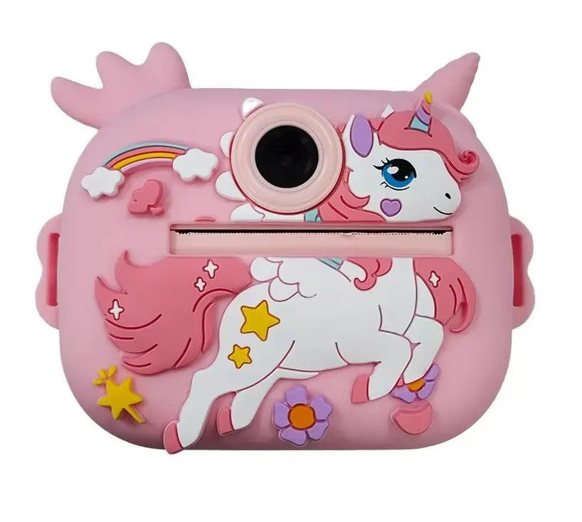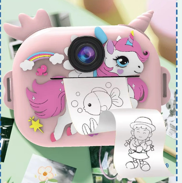 מצלמה דיגיטלית לילדים בעיצוב חד קרן שמאפשרת לצלם, להקליט ולהדפיס תמונות בלחיצת כפתור. הילדים מצלמים, לוחצים על הדפסה והתמונה יוצאת מיד במדפסת השחור לבן הפנימית. זו דרך חווייתית לשלב משחק, יצירה ותיעוד רגעים יומיומיים.
