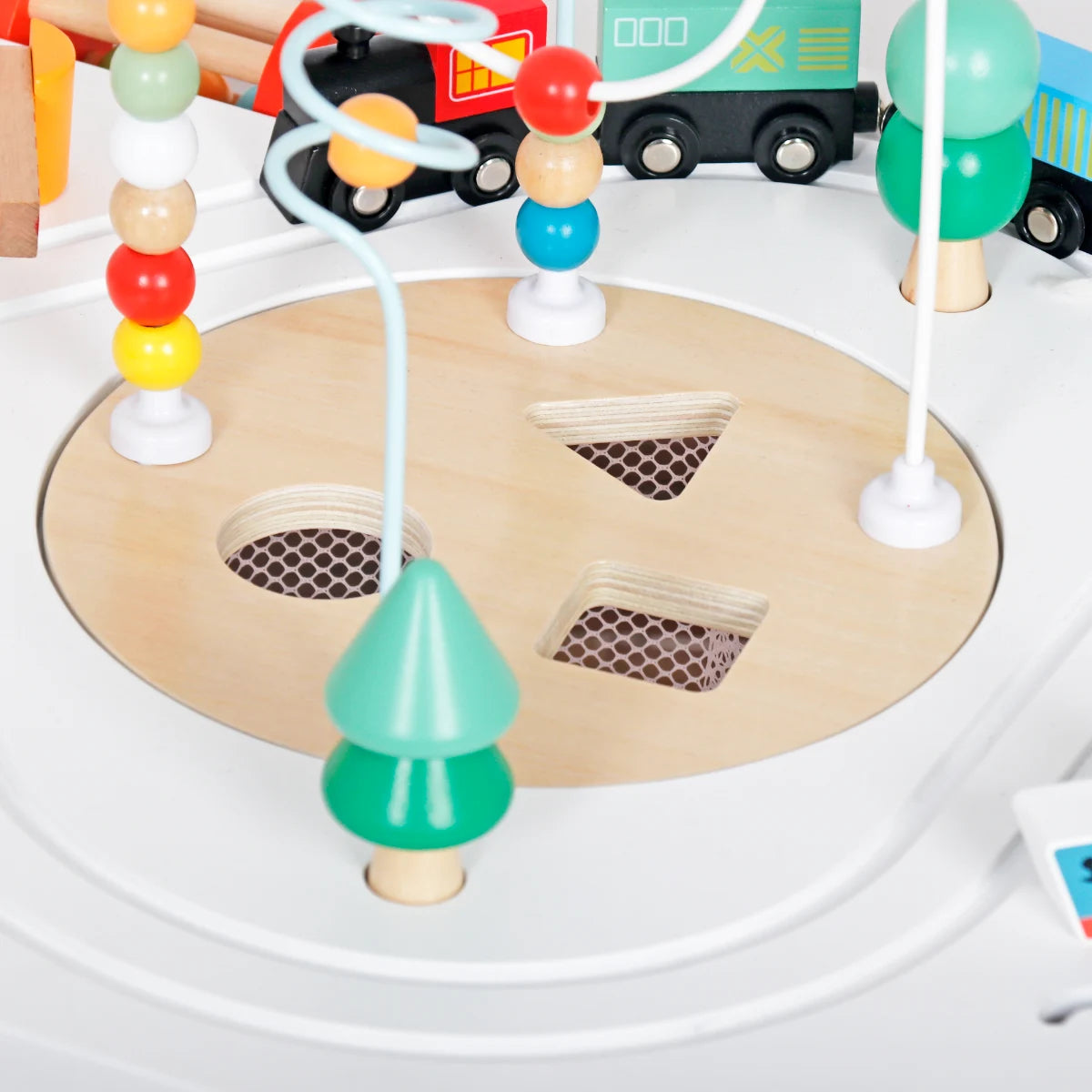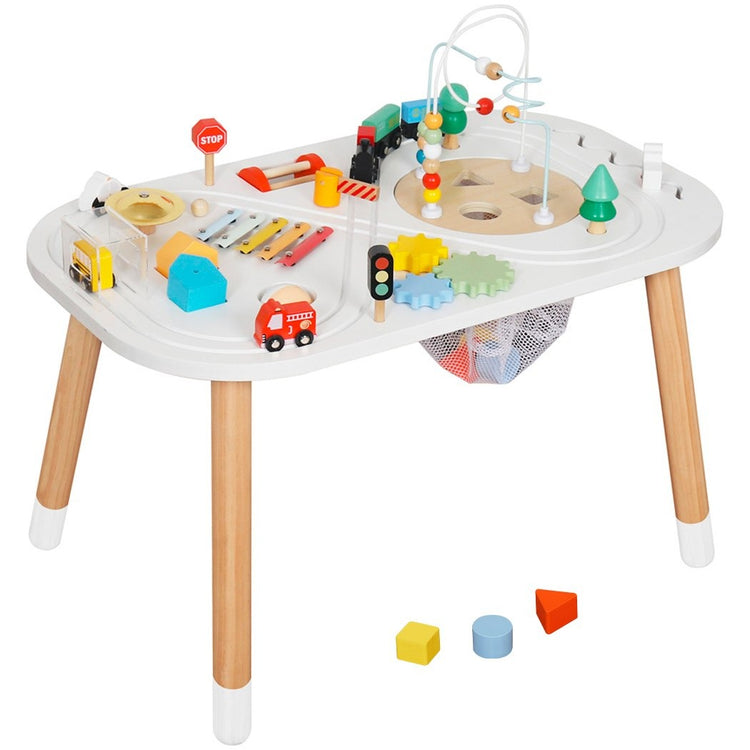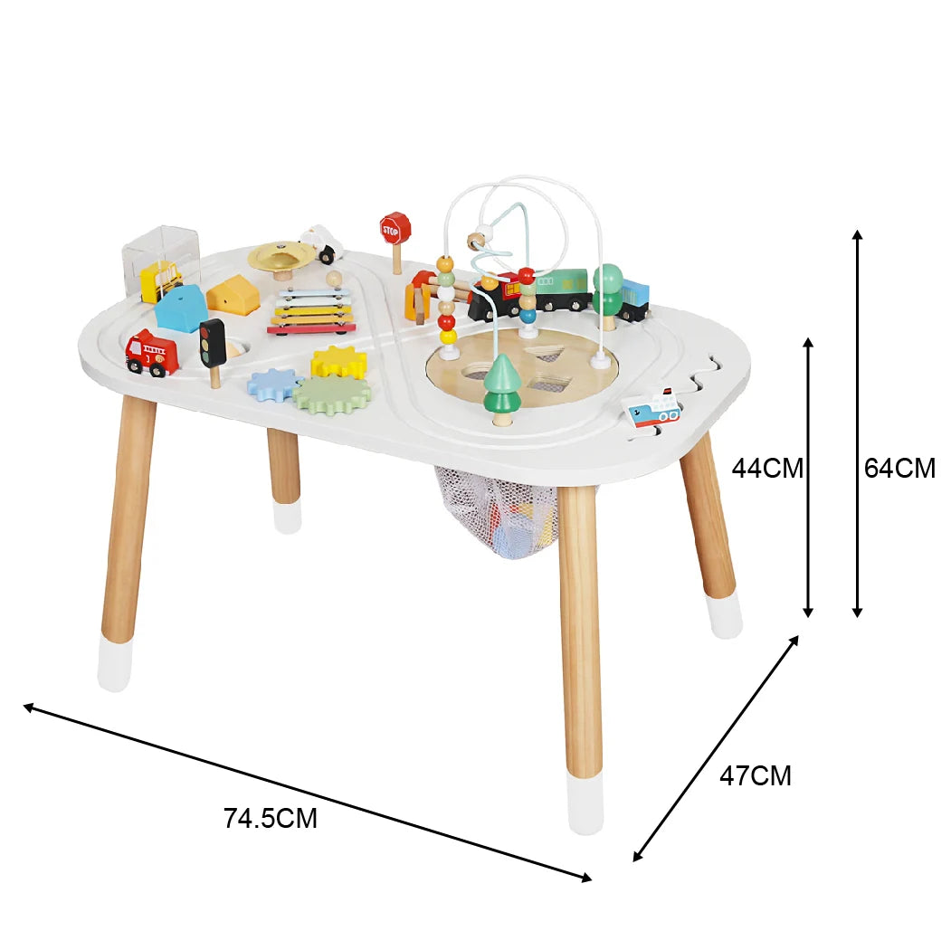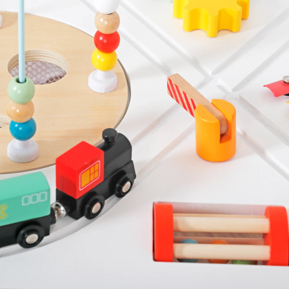 השולחן עשוי מעץ MDF חזק ואיכותי, וכולל מגוון רחב של אלמנטים משחקיים שנבחרו בקפידה. הפעילויות השונות תורמות לפיתוח חוש מוזיקלי, מוטוריקה עדינה, הבנת סיבה-תוצאה וקשר עין יד. כל פרט, צבע ואביזר תוכננו ליצירת חוויית משחק אמיתית, המעודדת סקרנות, ריכוז וחידוד החושים. המוצר נבדק ואושר על ידי מכון התקנים הישראלי, ומהווה יתרון מרכזי מבחינת בטיחות ואיכות.