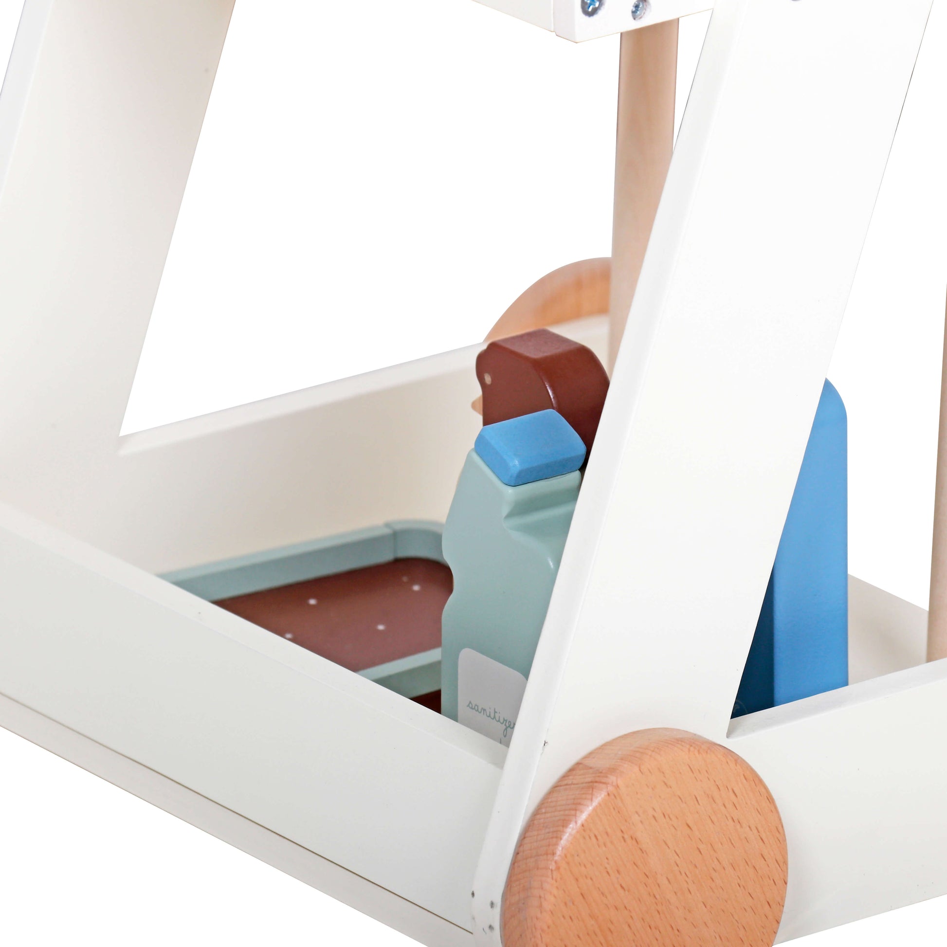 עגלת ניקיון מעץ לילדים מאפשרת לילדים להיכנס לעולם של משחקי תפקידים דרך חיקוי פעולות יומיומיות בצורה חווייתית ומהנה. העיצוב הנקי והמודרני יוצר סביבת משחק מזמינה, המעודדת אחריות, סקרנות והתנסות פעילה.